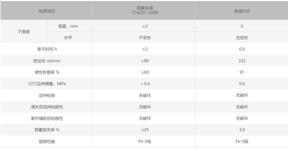 20級(jí)位移,阻燃性能達(dá)到FV-0級(jí),對(duì)大部分建筑材料具有良好的粘結(jié)性而不需要底涂。