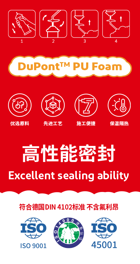 · 本產(chǎn)品不耐紫外線,因此推薦在固化的泡沫表面作其它材料的涂裝(例如:水泥砂漿,涂料等,施工后24小時(shí)才可涂裝)。