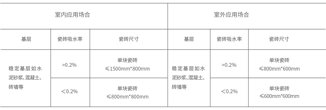· 瓷磚粘結(jié)劑的刮涂應(yīng)均勻且滿貼,粘結(jié)層的厚度應(yīng)約為所用齒型刮板齒距的一半高。